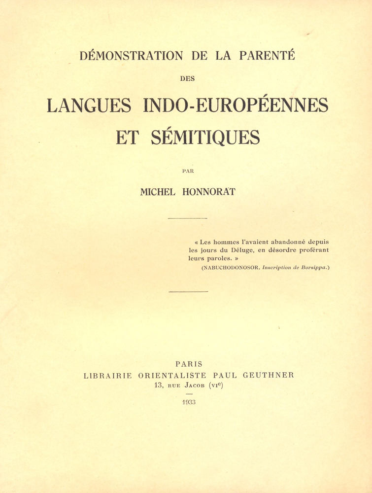 Démonstration de la parenté des langues indo-européennes et sémitiques
