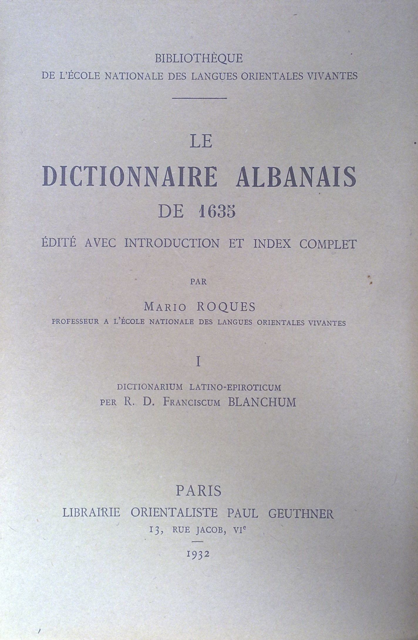 En 1635, Franciscus Blancus (Frangu i Bardhë) compose un dictionnaire latin-albanais, notamment pour mettre fin aux abus de l'Eglise dont la traduction des textes sacrés lui semble souvent partiale et peu fidèle. Les Albanais auront dorénavant un outil pour leur permettre de comprendre les textes dans leur langue originale.