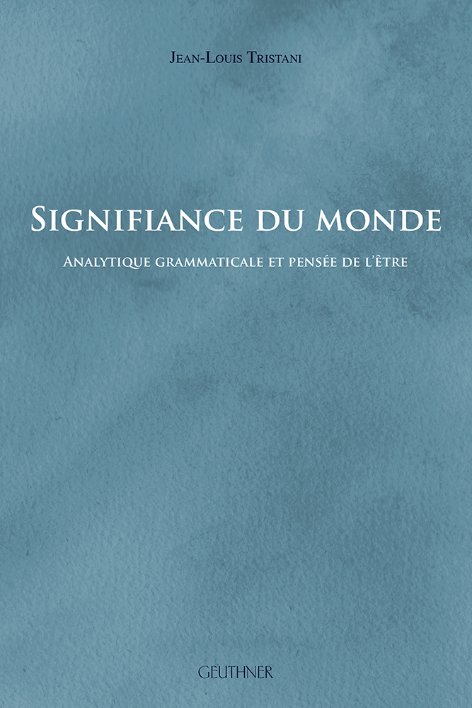 Signifiance du monde propose une « harmonisation intégrale » entre la linguistique saussuro-guillaumienne des langues naturelles et la pensée phénoménologique heideggérienne de la vérité de l’être en tant qu’alètheia, dans son sens grec de « ce qui sort de la latence » et que Jean-Louis Tristani nomme illatence. En d’autres termes, cet essai donne accès à une compréhension des « relations grammaticales évidentes qui articulent l’être, dans sa vérité, et la pensée, telles qu’elles sont a priori données dans le système linguistique de n’importe quelle langue naturelle ». Cette mise au jour de la co-originarité de la langue et de la pensée corrobore la formule du linguiste français Antoine Meillet, maintes fois citée par Gustave Guillaume, selon laquelle, en ce lieu intelligible de la langue « tout se tient et a un plan d’une pleine rigueur ». Une rigueur qui intègre le système morpho-lexical d’une langue, en tant qu’intégrale des conditions d’effection du discours, avec les conditions existentiales de possibilité du Dasein en tant qu’être-au-monde. D’où Signifiance du monde, ce titre qui annonce la composante linguistique de notre présence au monde.