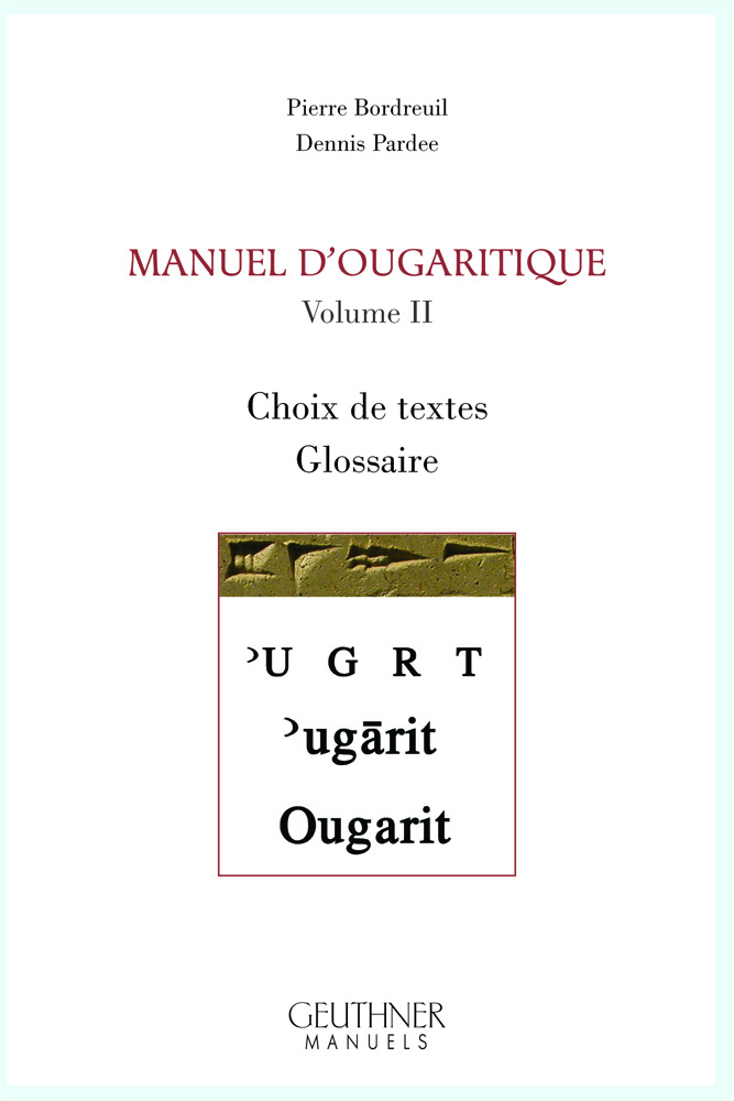 Le premier volume comporte une brève introduction historique qui est suivie d’un précis de grammaire et d’un choix de textes reproduits en fac-similés. Le second volume présente ces mêmes textes en transcription, vocalisation et traduction, le tout suivi d’un glossaire. De nouvelles photos et des fac-similés sont disponibles sur un CD qui est joint au Manuel d’ougaritique.