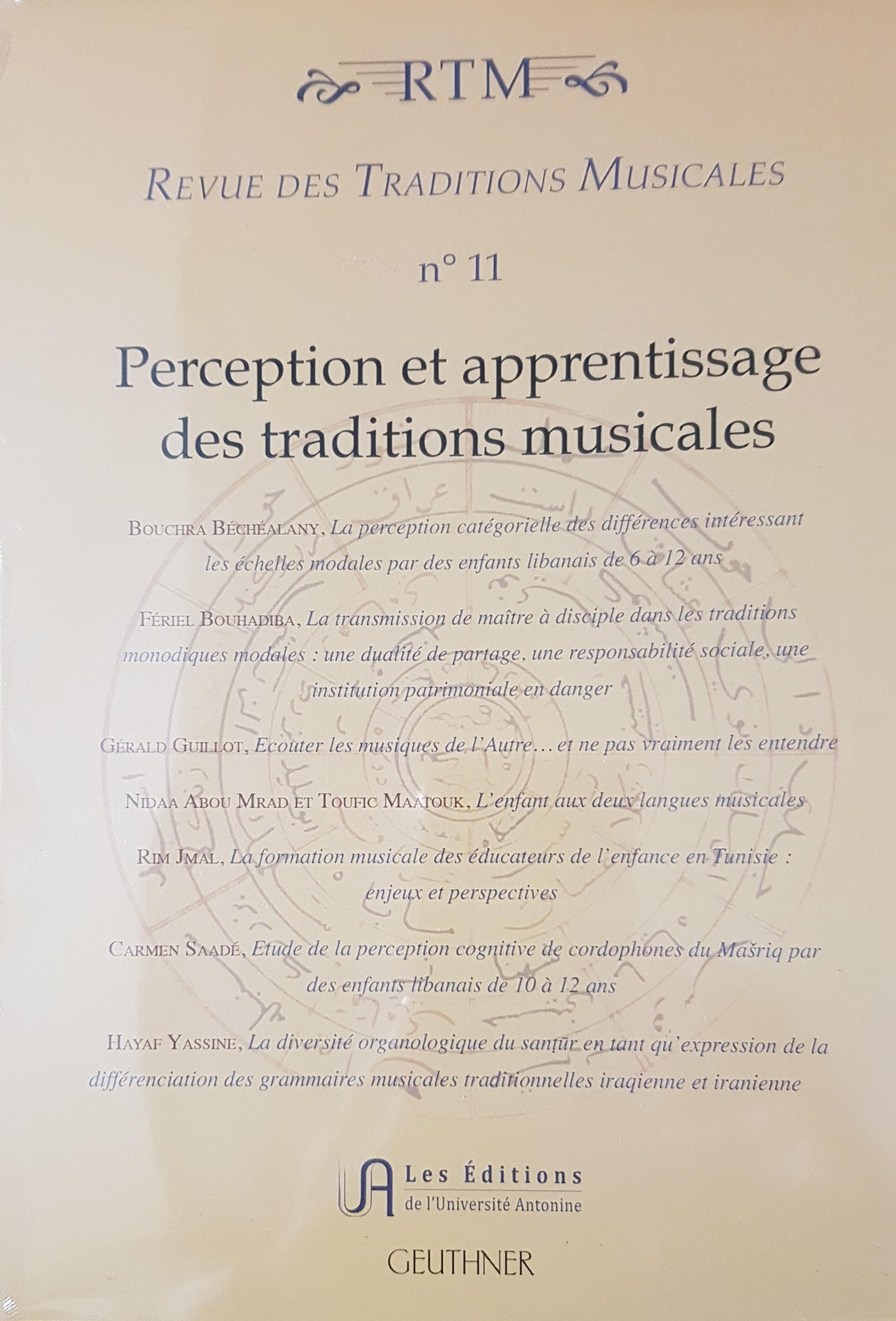 La Revue des Traditions Musicales (alias Revue des Traditions Musicales des Mondes Arabe et Méditerranéen, RTM) est un périodique scientifique annuel consacré aux traditions monodiques modales vivantes et/ou anciennes d’Asie occidentale et centrale, d’Afrique du Nord et d’Europe, et ce, dans une perspective musicologique générale et transdisciplinaire, qui met l’accent sur l’analyse musicale. La RTM est le fruit de la collaboration musicologique entre l’Université Antonine (Liban) et l’Université Paris-Sorbonne et, plus particulièrement, entre le Centre de Recherche sur les Traditions Musicales (CRTM, http://recherche.ua.edu.lb/crtm/), rattaché à la Faculté de Musique et Musicologie de l’Université Antonine, et l’Institut de Recherche en Musicologie (IReMus UMR 8223, France http://www.iremus.cnrs.fr/). Elle est coéditée par les éditions de l’Université Antonine (EUA) et les éditions Geuthner. Elle figure dans les bases de données scientifiques EBSCO et RILM.